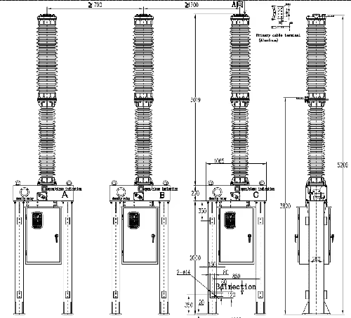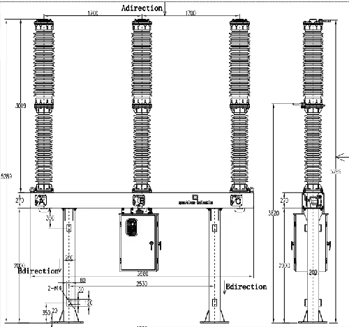 ট্রান্সফর্মার সহ তিন ধাপের উচ্চ ভোল্টেজ 35 কেভি 40.5 কেভি ভ্যাকুয়াম সার্কিট ব্রেকার